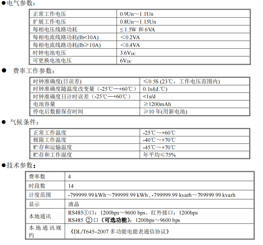 具有分時(shí)計(jì)量組合有功電量、正、反有功電量及需量、組合無功、四象限無功電量和遠(yuǎn)程費(fèi)控等功能,并具有紅外通訊和RS485接口;三相電源供電(即線路供電方式)時(shí),當(dāng)三相四線中的任兩相斷電時(shí),電能表仍能正常工作,在失去交流電源的情況下,電能表能夠保持?jǐn)?shù)據(jù)和維持時(shí)鐘芯片工作。